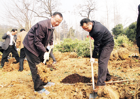 又是一年春草綠,又到一年植樹時(shí)。昨天上午,周春雨、白金明、何金良、顧世平、方志宏等市領(lǐng)導(dǎo)觀摩“綠滿珠城”示范點(diǎn)建設(shè)情況,并與市直機(jī)關(guān)干部一起來到張公山公園參加義務(wù)植樹活動(dòng),用實(shí)際行動(dòng)號(hào)召全市人民積極參加植樹造林,為推進(jìn)綠滿珠城,創(chuàng)建國家級(jí)園林城市揮鍬添綠。市委常委,市人大、市政府、市政協(xié)全體負(fù)責(zé)同志參加活動(dòng)。